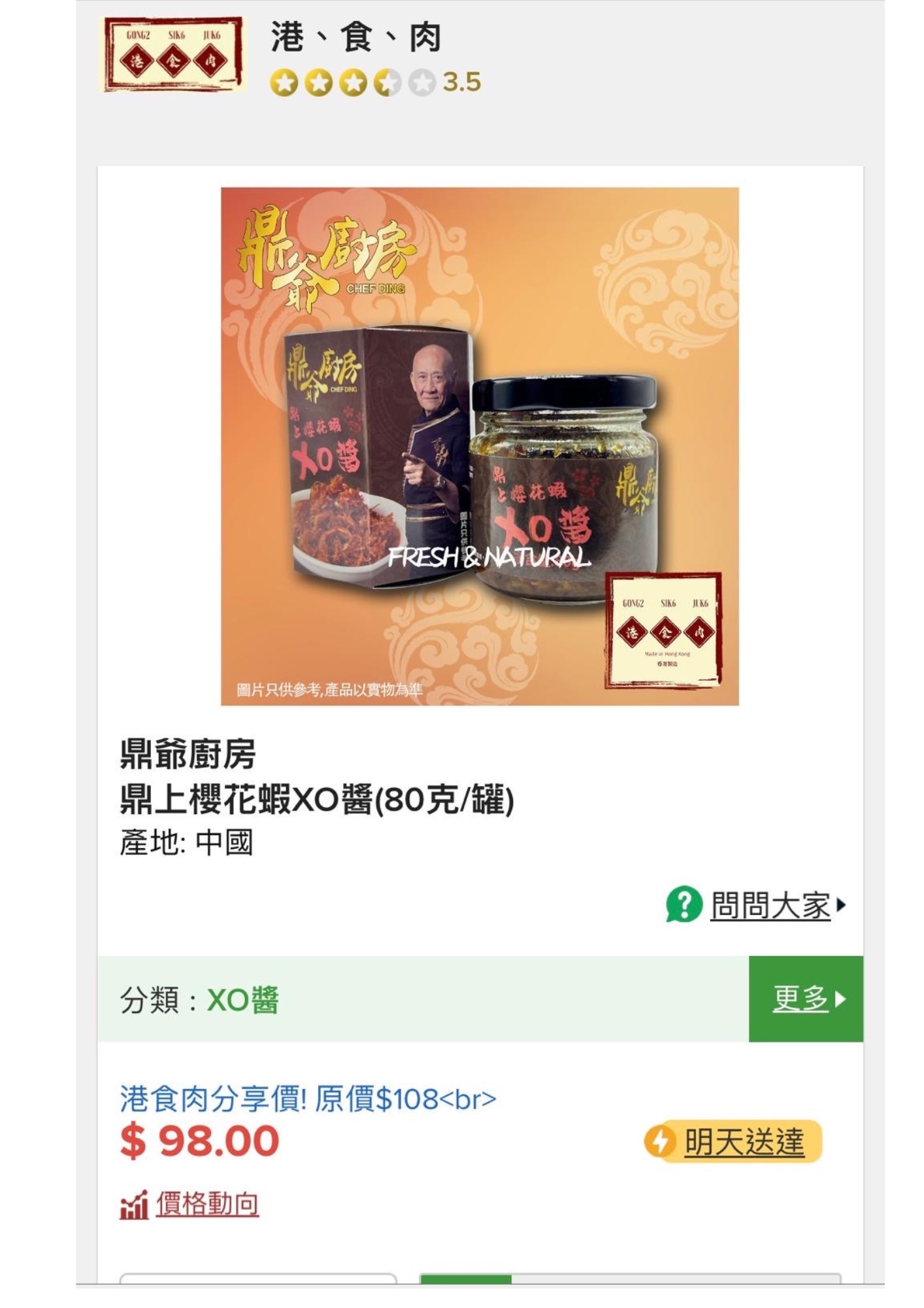 ## 鼎爺廚房 XO 醬:傳承經典,味蕾盛宴 李家鼎爺爺廚房XO醬,由香港資深藝人兼美食家李家鼎先生親自監製,秉承傳統工藝,嚴選頂級食材,為您呈現無與倫比的味覺享受。這款XO醬不僅僅是一瓶調味品,更是一段充滿歲月沉澱的美食傳奇,將鼎爺對料理的熱情與堅持完美融入其中。 精選上等干貝、蝦米、金華火腿、大地魚等珍貴海味,經過繁複的工序精心製作而成。每一步驟都講究細節,從食材的挑選、浸泡、蒸煮、油炸,到最後的翻炒,都由經驗豐富的師傅親手掌握,確保每一批XO醬都能達到最高品質。 李家鼎爺爺廚房XO醬的鹹鮮滋味與濃郁香氣,來自於食材本身的天然風味,絕不添加任何人工色素、防腐劑或味精。無論是佐餐、拌飯、拌麵,或是用於烹調海鮮、肉類、蔬菜,都能瞬間提升料理的層次,讓您輕鬆在家享受星級美味。打開瓶蓋,一股鮮香撲鼻而來,入口後滋味豐富,令人回味無窮。 除了美味,李家鼎爺爺廚房XO醬也注重產品的安全性與衛生。生產過程嚴格遵循食品安全標準,確保產品的品質和安全。讓您在品嚐美味的同時,也能安心享用。 **重點功能:** * **嚴選頂級食材:** 精選上等干貝、蝦米、金華火腿、大地魚等珍貴海味。 * **傳統工藝製作:** 遵循古法秘方,由經驗豐富的師傅手工製作。 * **無添加配方:** 不含人工色素、防腐劑或味精,健康美味。 * **用途廣泛:** 可用於佐餐、拌飯、拌麵、烹調海鮮、肉類、蔬菜等。 * **風味獨特:** 鹹鮮滋味濃郁香氣,提升料理層次。 * **嚴格品質把控:** 生產過程嚴格遵循食品安全標準,安全可靠。 * **李家鼎爺爺監製:** 品質保證,信譽之選。 * **香港製造:** 源自香港的美味傳承。 李家鼎爺爺廚房XO醬,是您廚房裡不可或缺的秘密武器,更是饋贈親友的最佳伴手禮。現在就將這份蘊藏著美食智慧的XO醬帶回家,為您的味蕾帶來一場前所未有的盛宴。
